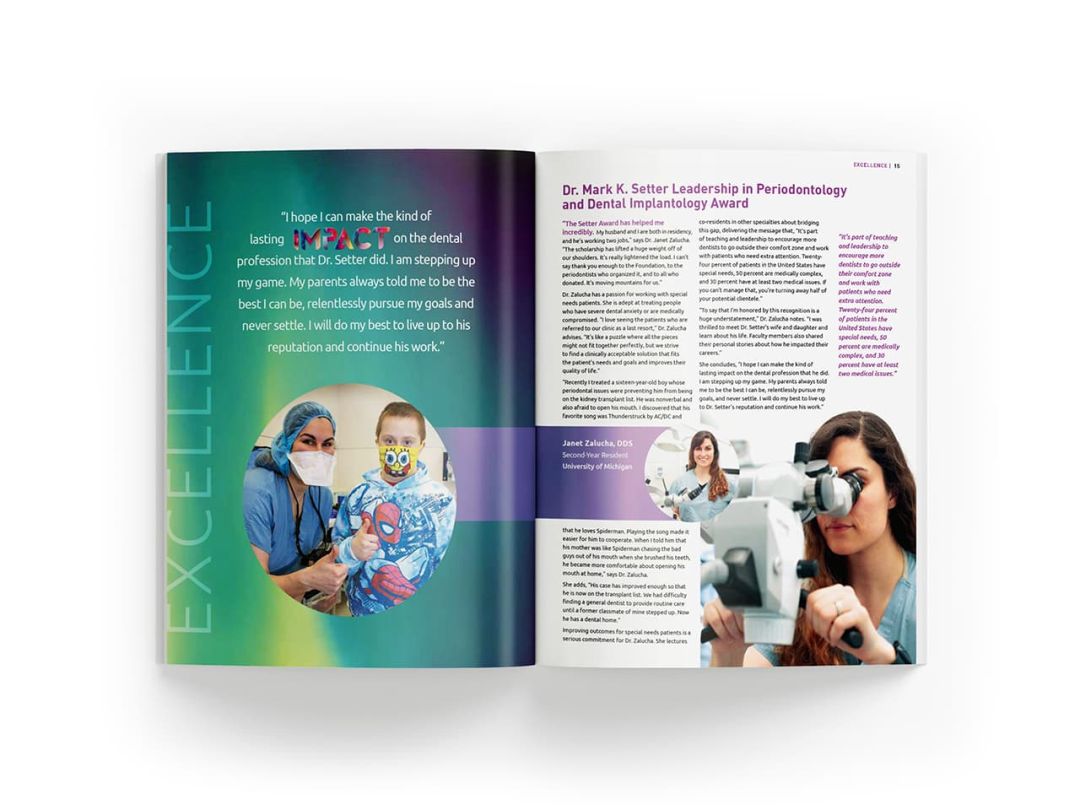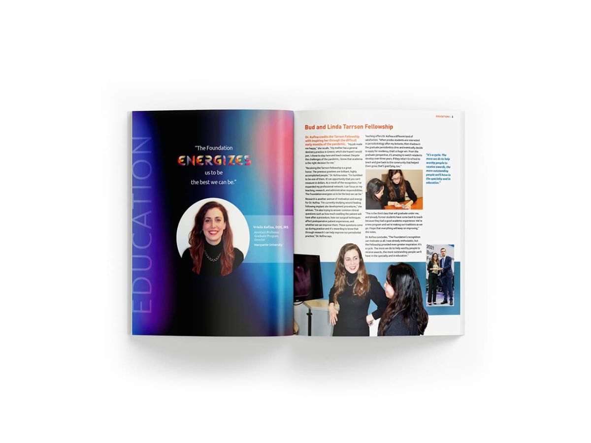 Fueling Passion theme for this year’s annual report was inspired by grant winners' great, passionate quotes this year. Foundation supporters help fuel the passion, which, in turn, leaves a legacy and impacts the public’s health. The cover features a lenticular that shifts/animates between the AAPF logo embellished with flame-like colors and gradations and a collage of the award winners.