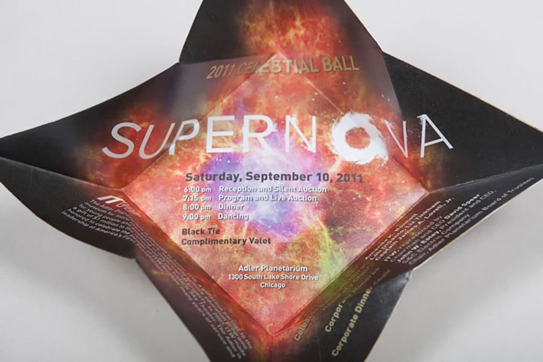 The Adler Planetarium's Annual Celestial Ball inspired our interactive invitations that shimmer, shine and explodes as they unfold with the excitement of the event theme.