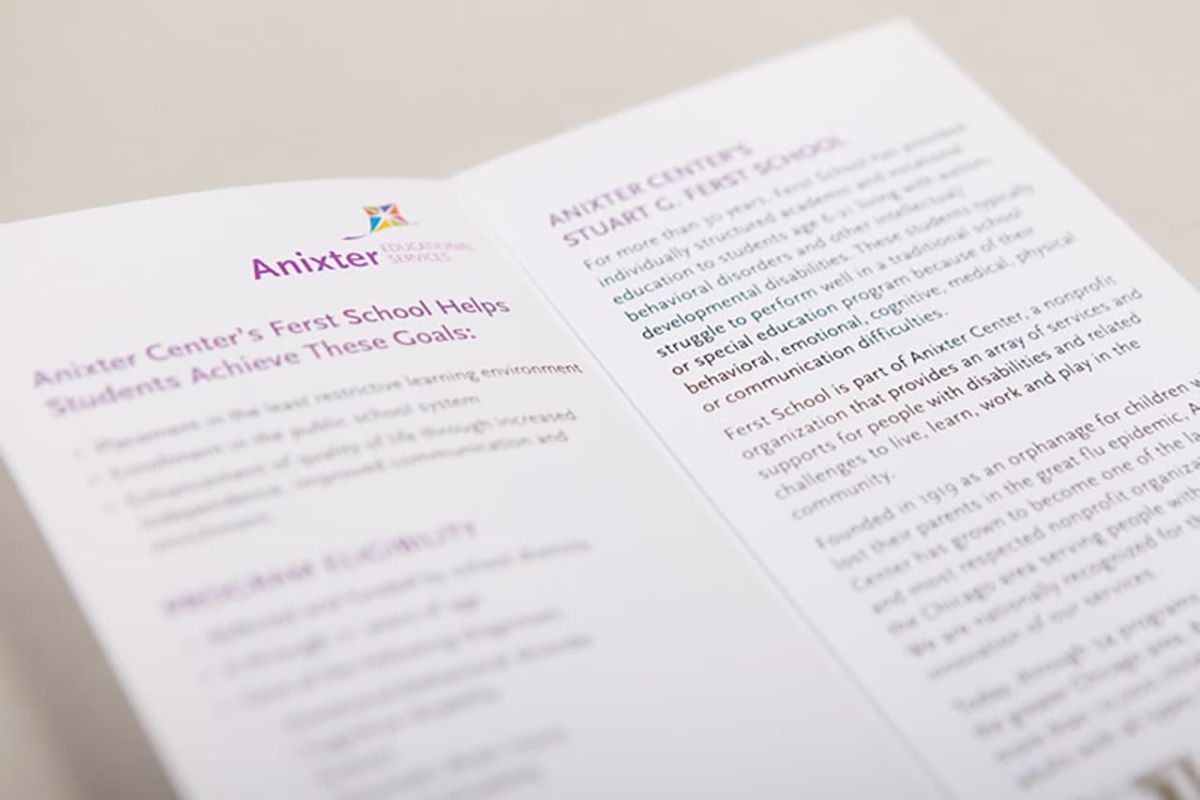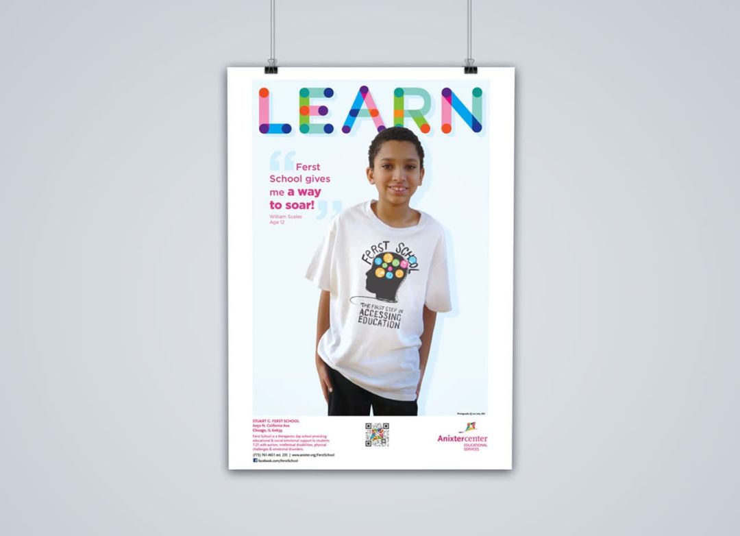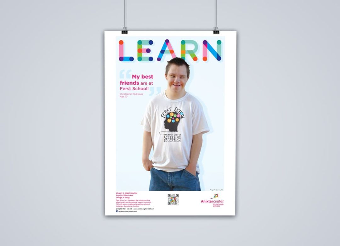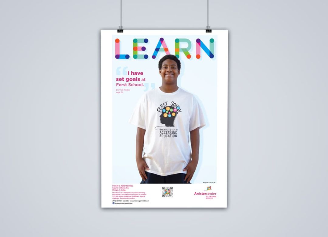 Anixter Center's Stewart G. Ferst School has provided individualized instruction for children with autism, behavioral disorders, brain injuries and intellectual/developmental disabilities for more than 30 years. We boosted the awareness of the unique features of Ferst School's academic and therapeutic programs for families and referral agencies with a series of posters featuring the joy and success of it's students.
