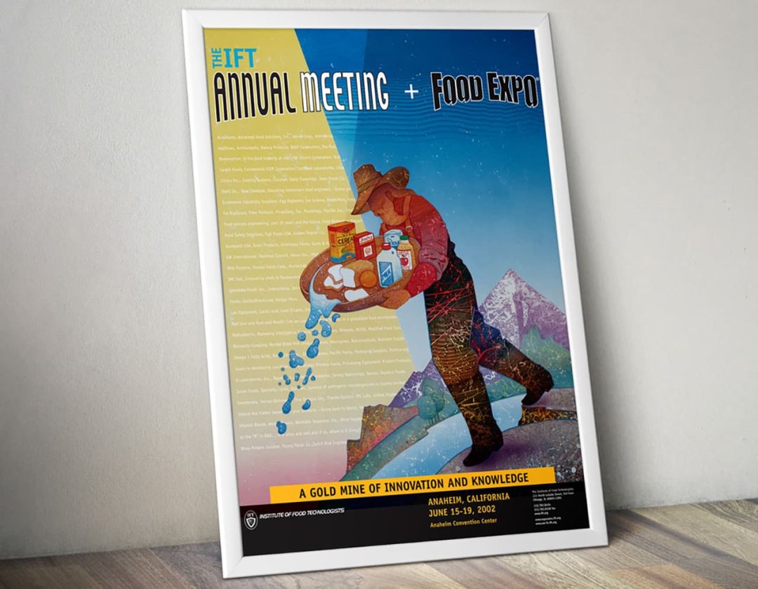 The Institute of Food Technologists is the premier organization for 26,000 members in the field of food science and technology. Their Annual Meeting and Food Expo brings together over 20,000 attendees and 900 exhibitors to stay on top of the latest trends, technologies and issues and to expand their professional support network. The theme depicted information and knowledge as “gold” and paid historical tribute to the California location.