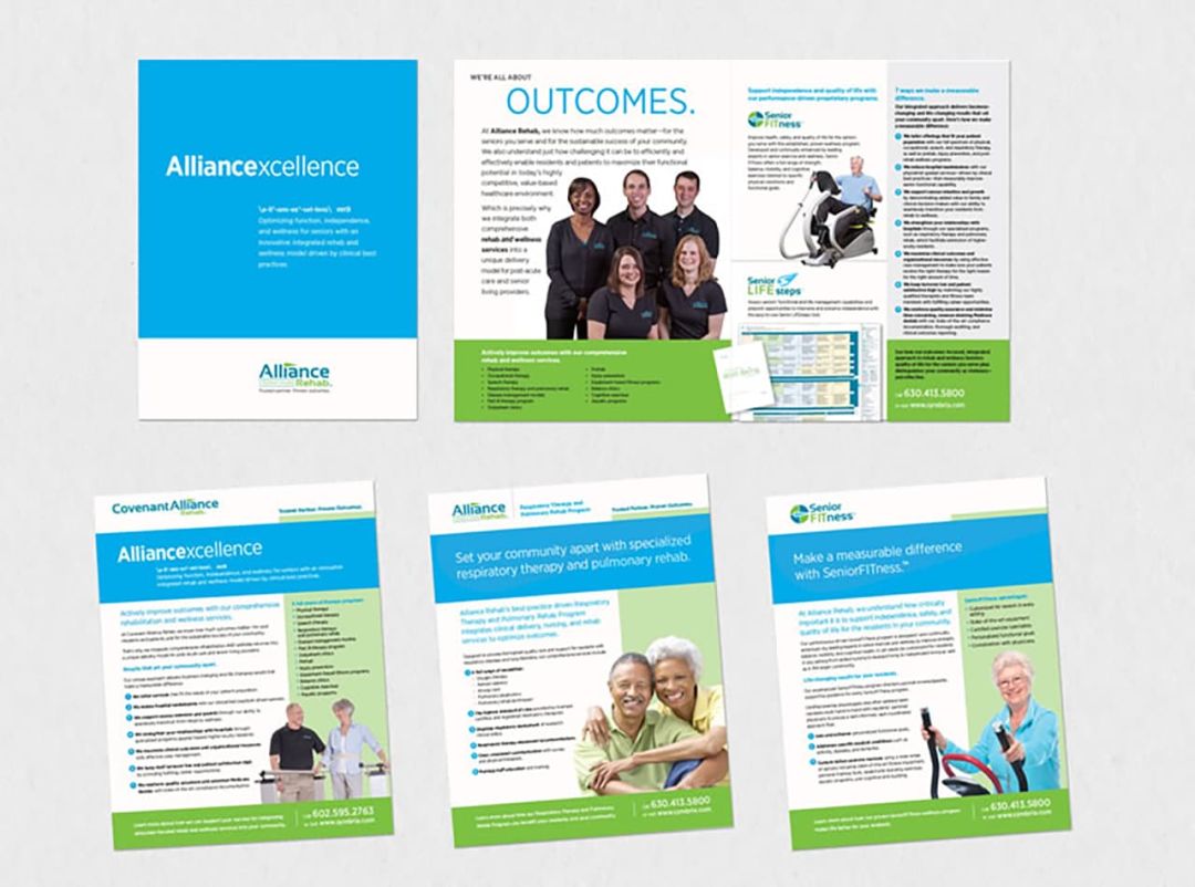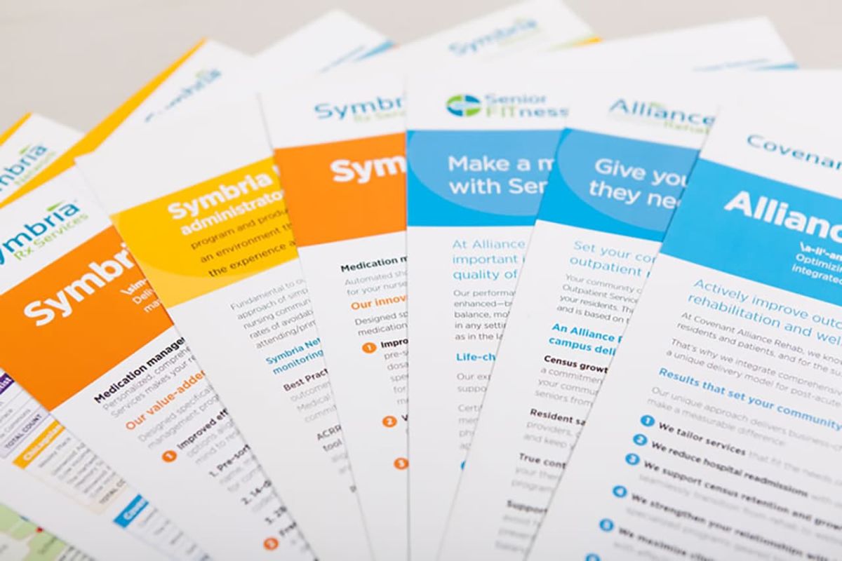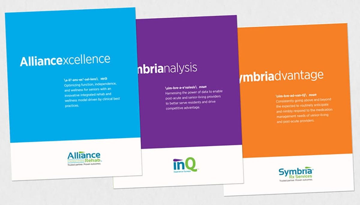 With programs including therapy services, pharmacy services, wellness programs, data collection and reporting, their services were varied but essential for the senior wellness category. Our graphic approach grew out of the understanding that their audiences were very busy and we needed to create an appealing visual landscape that allowed for the content to be easily navigated and quickly digested in both print and digital media.
