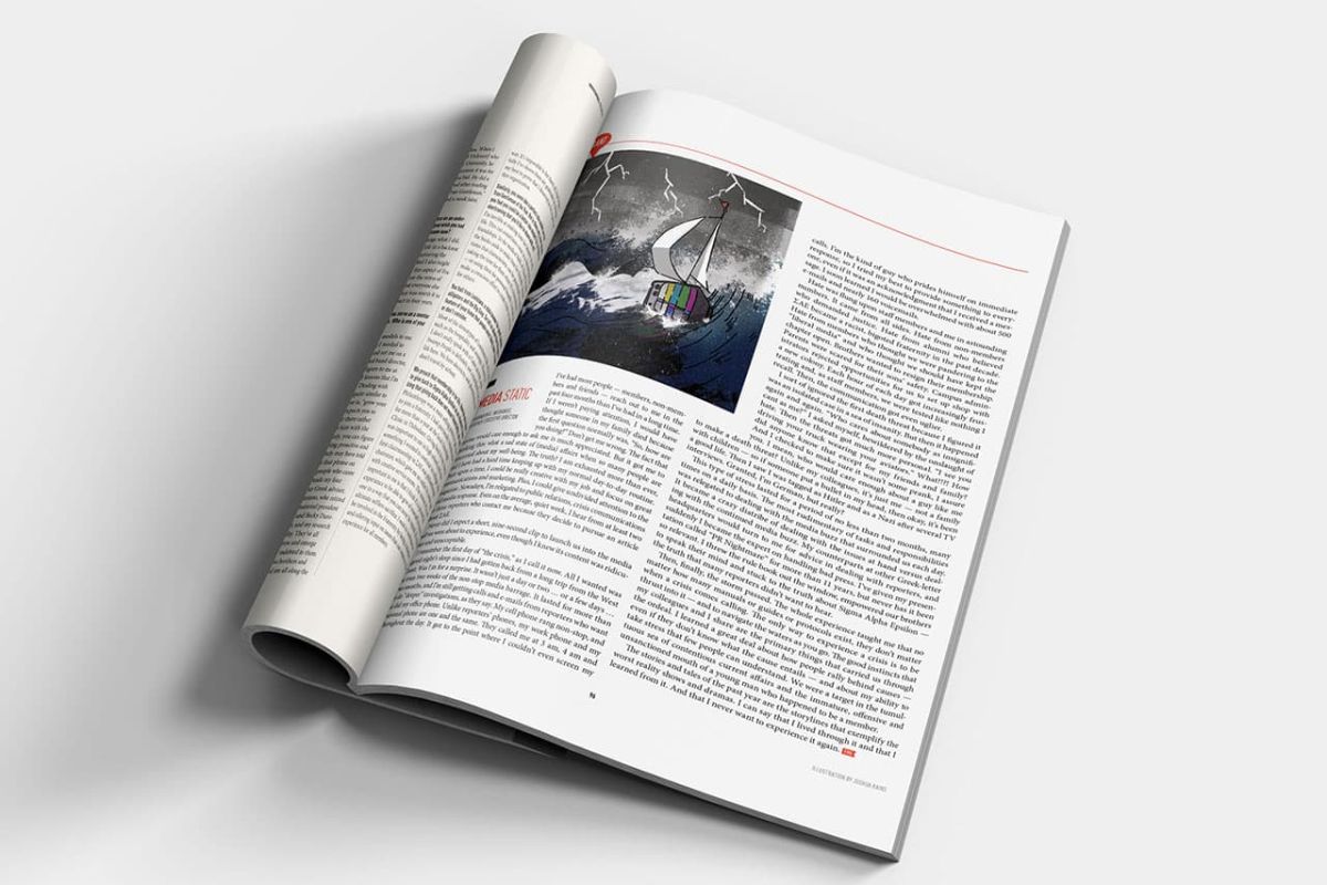We work closely with the magazine's director and editorial staff to brainstorm the visuals for the cover and features. We orchestrate the creative process with our varied resources for original photography and illustration. We coordinate with the printer to push the creative on paper and unique printing techniques. Consequently, SAE has received many first place awards for both their editorial writing and magazine design.