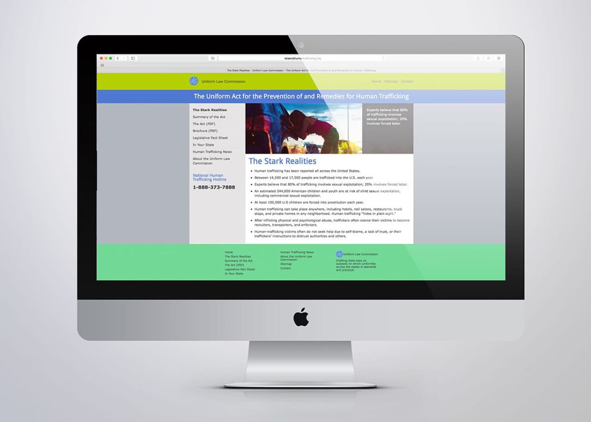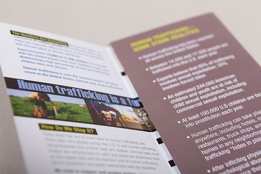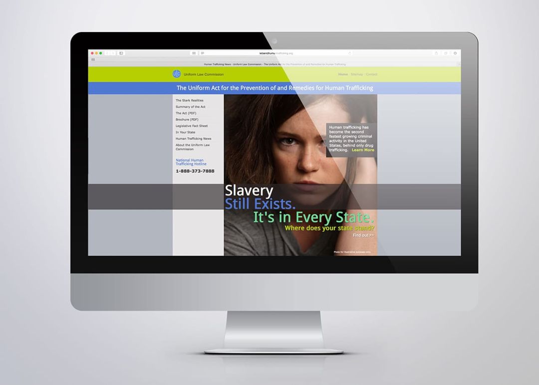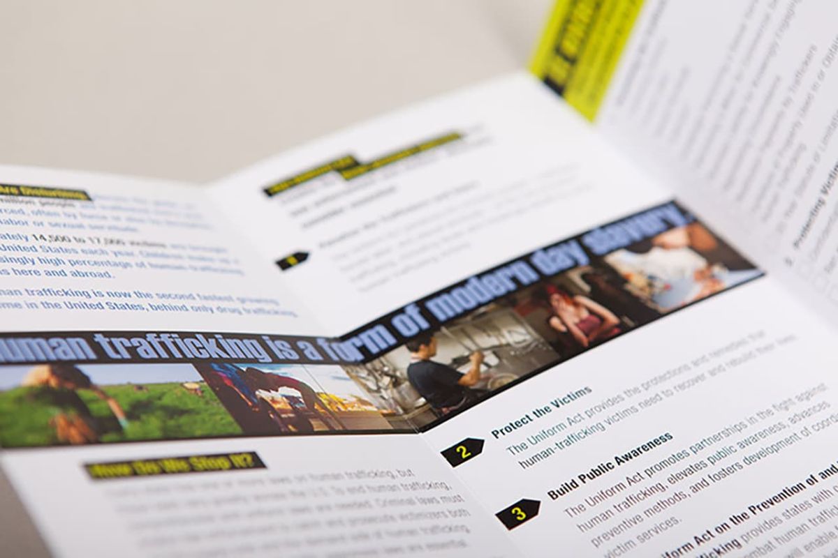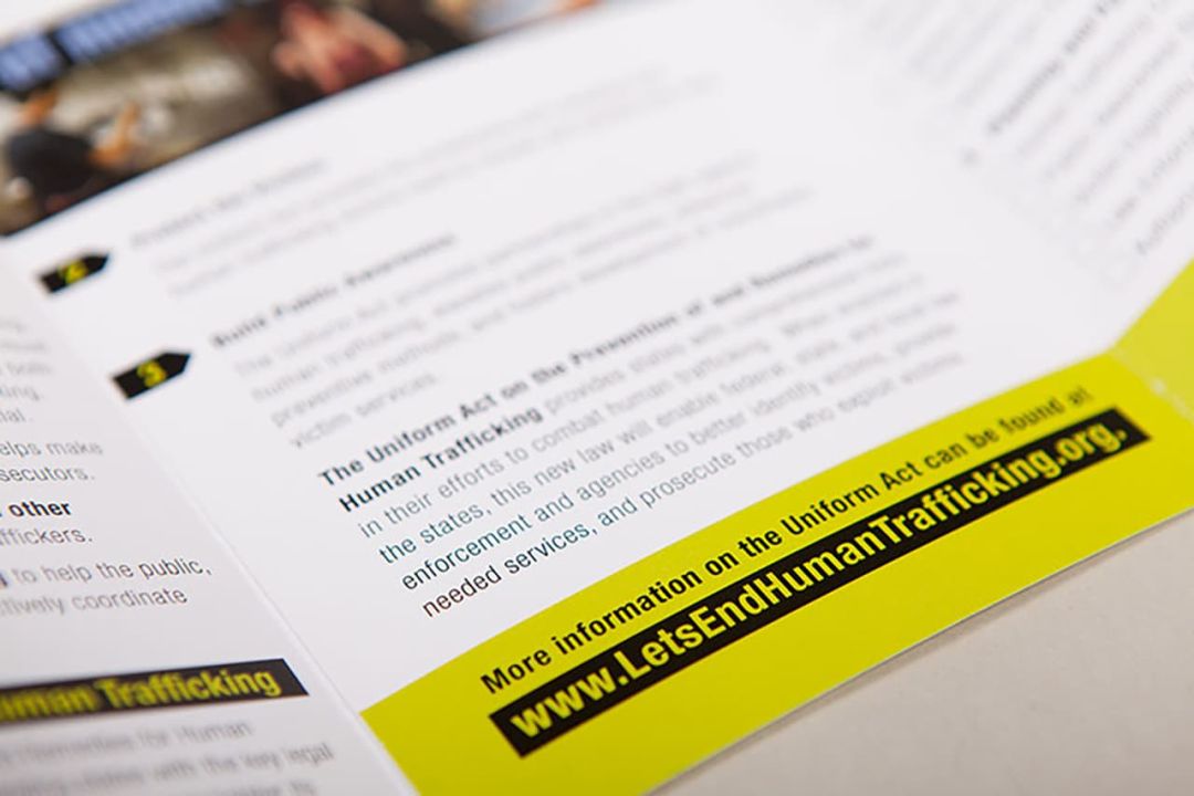 We created the LetsEndHumanTrafficking.org microsite with in-depth information about the issue and its relevancy to every state. A companion print piece was sized to be useful to commissioners in brief corridor encounters that fits easily into a legislator’s pocket.